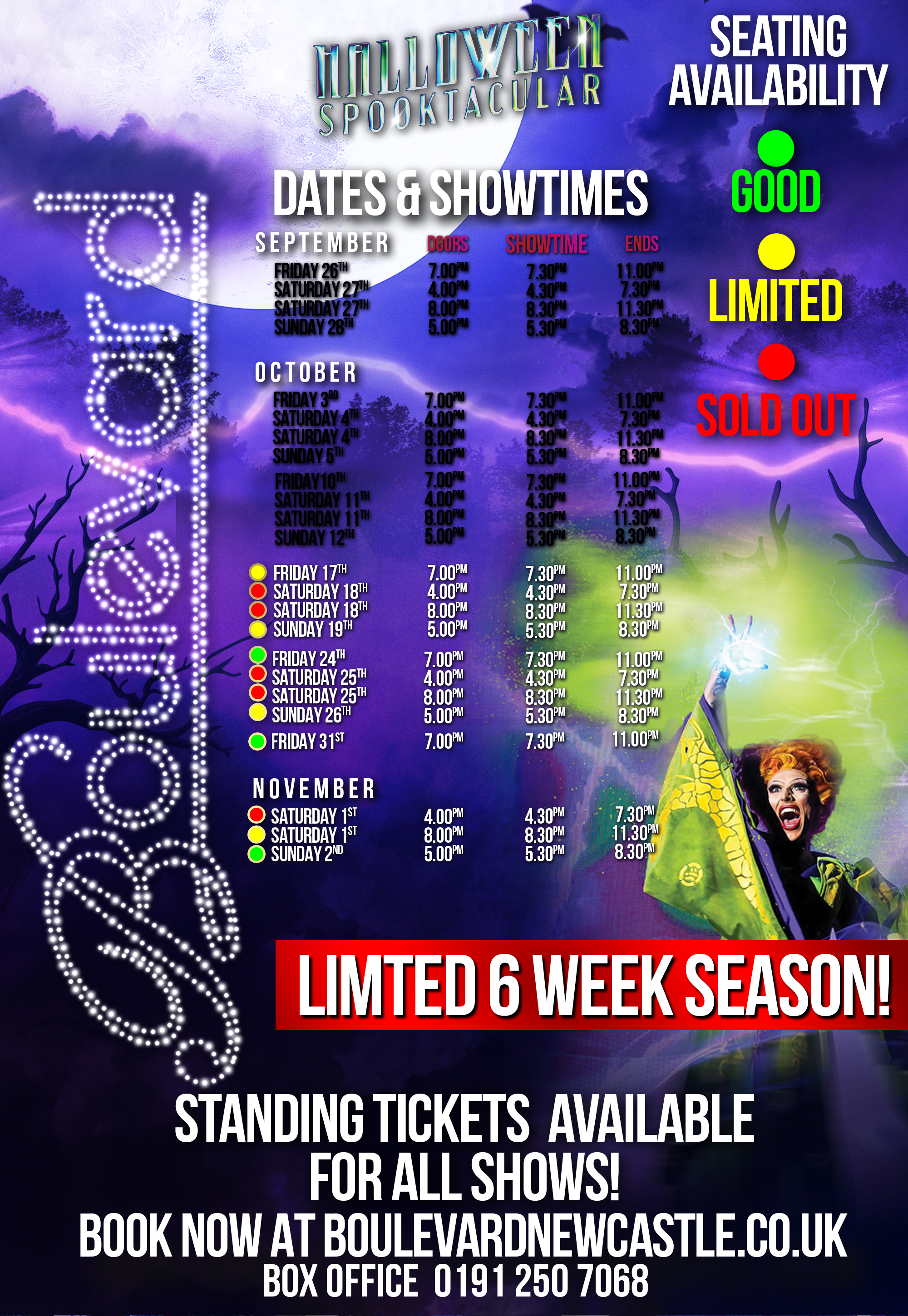 Prepare yourself for spectacular choreography, dazzling costumes and side splitting comedy in our custom designed theatre venue